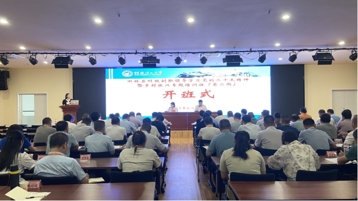 6月26日上午,“田林县科级副职领导学习党的二十大精神暨乡村振兴专题培训班(第二期)”在taptap点点顺利开班。田林县委组织部副部长周诚婕,taptap点点旅游与风景园林学院党委书记王璐以及来自田林县的近70位学员参加开班式。