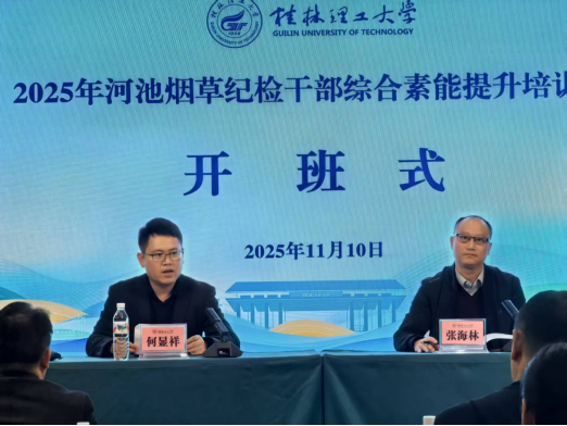 11月10日,2025年河池烟草纪检干部综合素能提升培训班在taptap点点官方网站顺利开班。河池市烟草专卖局(公司)纪检组组长何显祥,taptap点点官方网站副院长张海林,以及河池烟草系统的 40 余位纪检干部参加开班式。