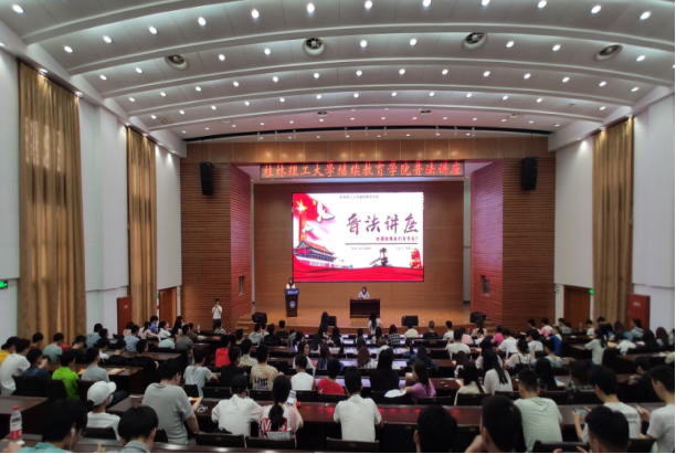 为加强学生“学法、懂法、守法、用法”的意识和能力, 2019年5月20日下午学院组织全体学生在屏风校区图书馆学术报告厅举行了主题为《犯罪离我们有多远》的普法讲座,由桂林市七星区检察院检察官陈晨主讲。