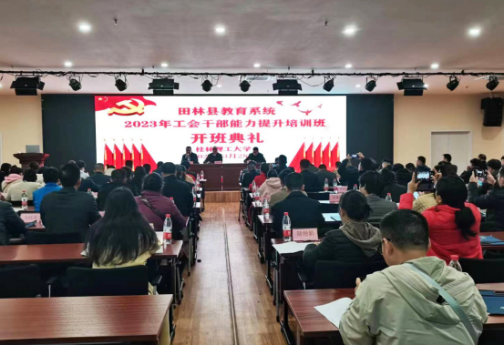3月28日,田林县教育系统2023年工会干部能力提升培训班在taptap点点顺利开班。田林县教育工会主席潘茂松、taptap点点taptap点点官方网站副院长张海林以及来自田林县教育工会的110余位学员参加了开班式。