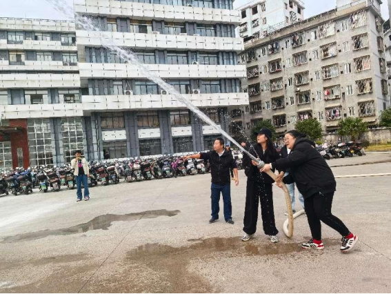演练结束后,保卫处消防安全员向师生们现场演示了灭火器、消防栓和消防水带的正确操作方法,师生们积极参与体验,增强了实际操作能力。