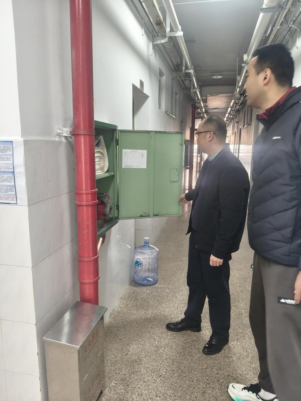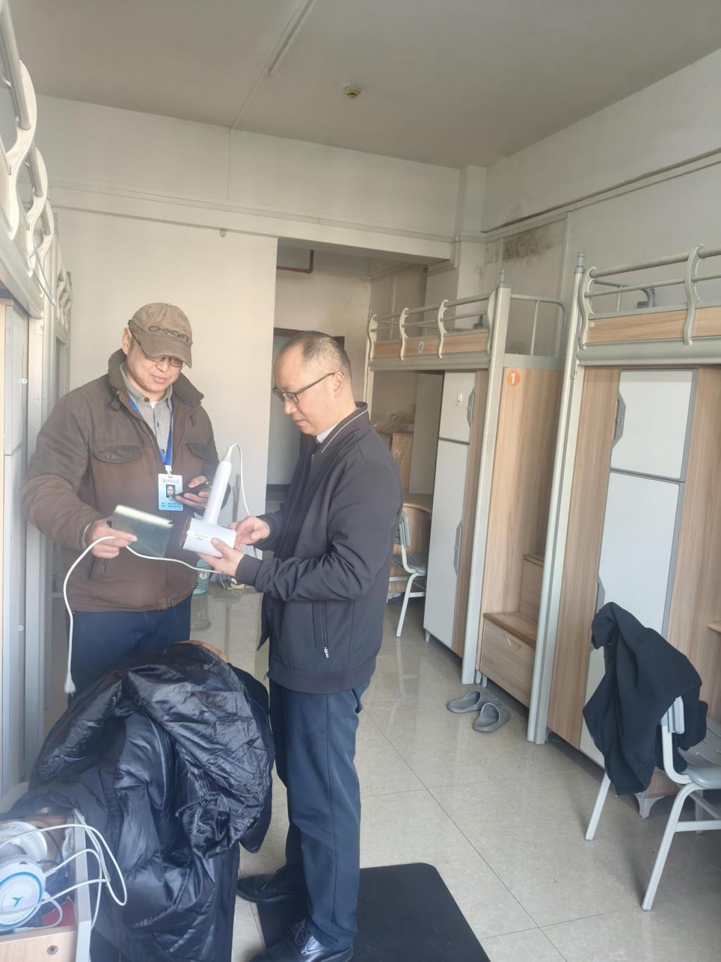 检查组一行先后深入教十栋办公区、教学区域、14栋学生宿舍以及国教园区宿舍,对消防安全、用电安全、设施设备运行情况及环境卫生等进行了细致排查。在检查过程中,张副院长详细询问了各区域安全责任落实、日常巡查记录及应急预案准备情况,重点查看了消防器材是否完好有效、安全通道是否畅通无阻、用电布线是否规范、宿舍内是否存在违规电器等关键环节。