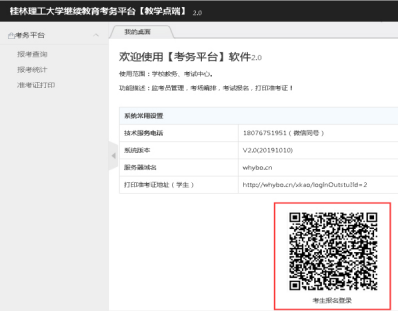 本次考试采用系统进行报名,由各教学点负责老师先行登录考务平台教学点端(地址为:http://whybo.cn/xkao/loginOutbjd),将本教学点的报名二维码截图发给学生,再由学生扫描二维码填报个人报名信息。