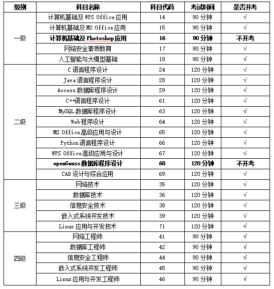 2.考生最多可同时报考3个科目,在网上报名结束前可增加报考科目。考生不受年龄、职业、学历等背景的限制,均可根据自己学习情况和实际能力选考相应的级别和科目。