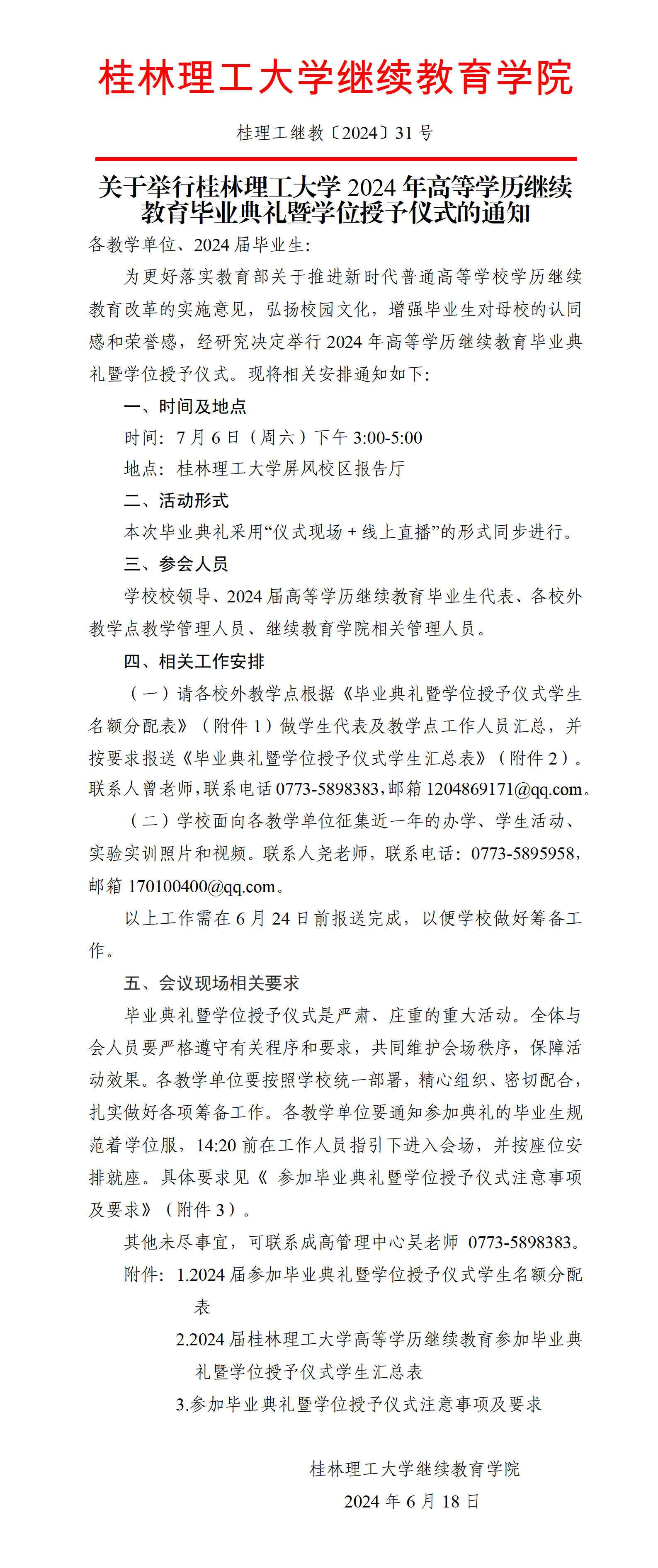 关于举行taptap点点官方网站2024年高等学历继续教育毕业典礼暨学位授予仪式的通知 发布者:成高管理中心 2024-06-18 已阅人次 (一审:吴佳 二审:林文钊 三审:李衡) 上一条:关于做好taptap点点2023级成人高等教育本科学生毕业设计(论文)工作的通知 下一条:关于评选2024届高等学历继续教育优秀毕业生的通知 关注我们