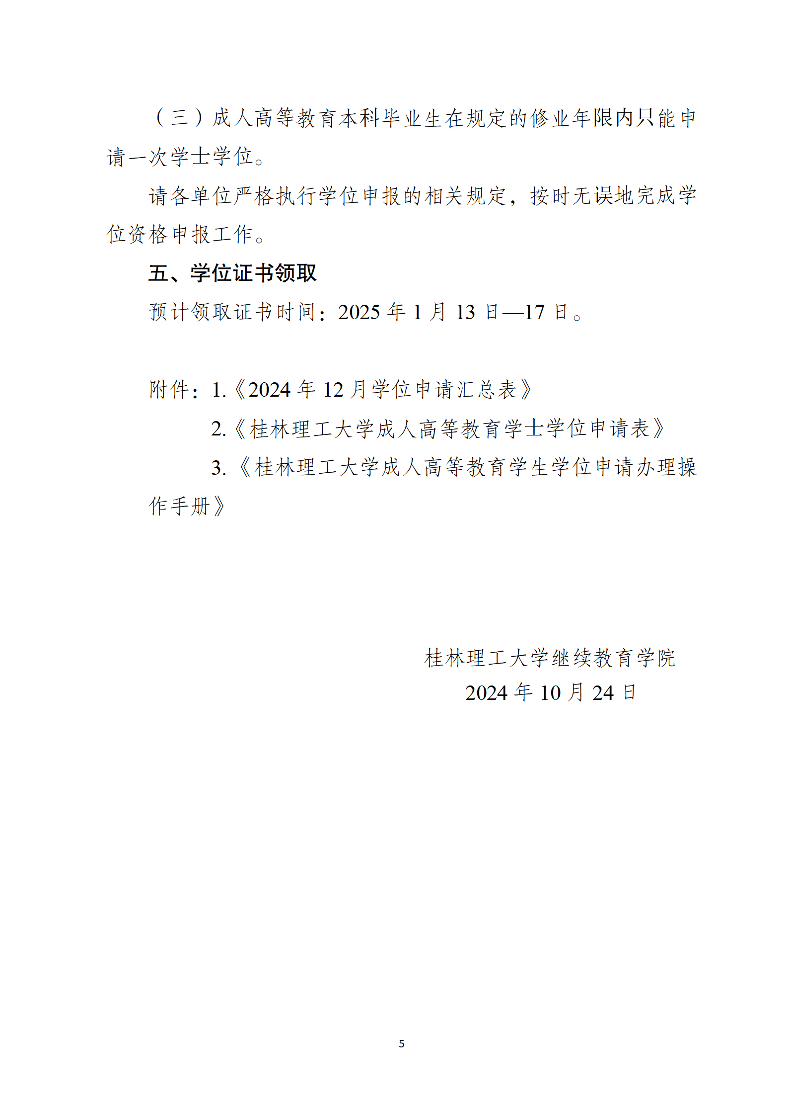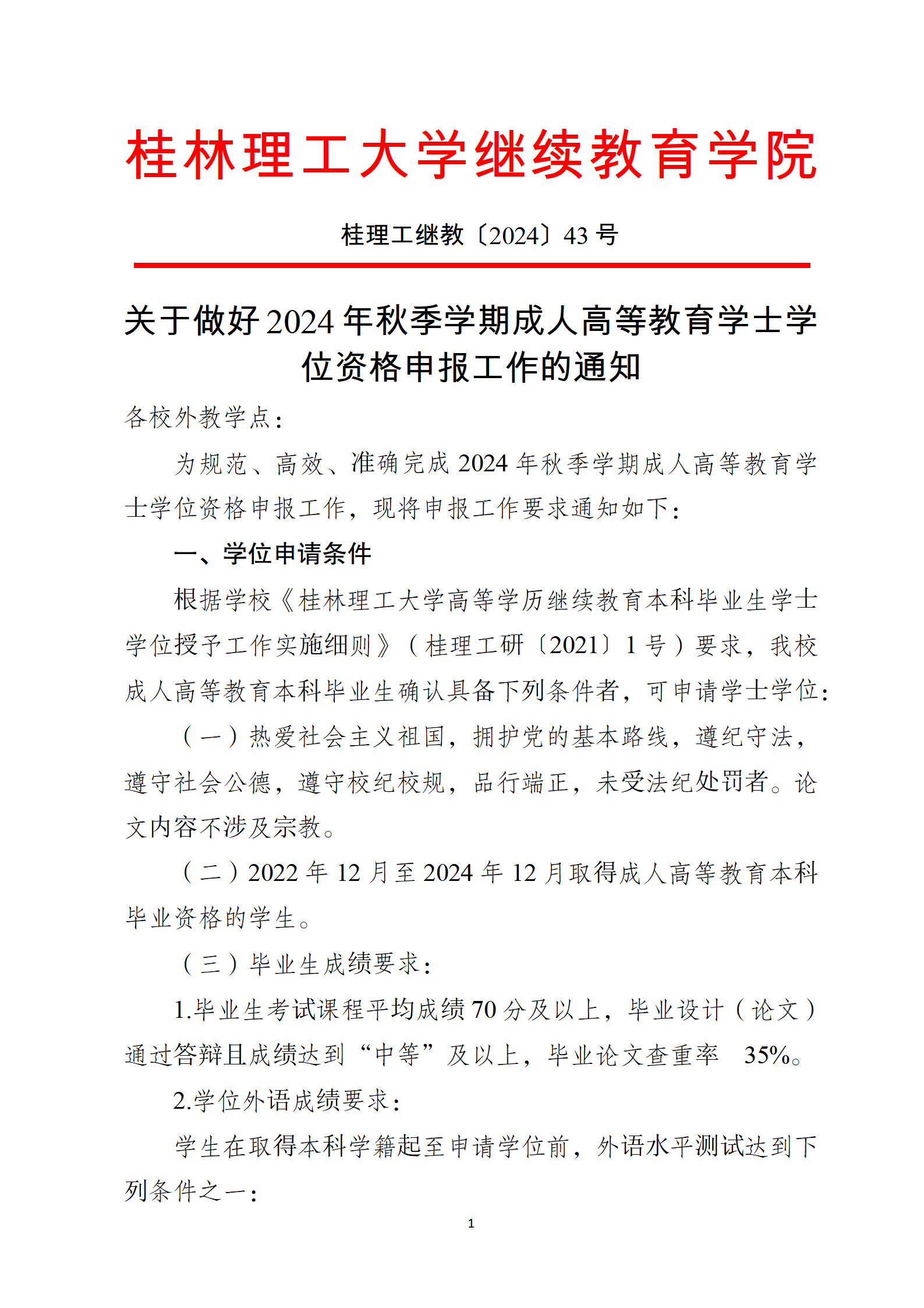 关于做好2024年秋季学期成人高等教育学士学位资格申报工作的通知 发布者:成高管理中心 2024-10-25 已阅人次 (一审:于德新 二审:林文钊 三审:李衡) 上一条:关于做好2024年秋季学期第二批线下面授学习的通知 下一条:关于做好2024年秋季学期成人高等教育毕业资格审核及毕业证办理工作的通知 关注我们