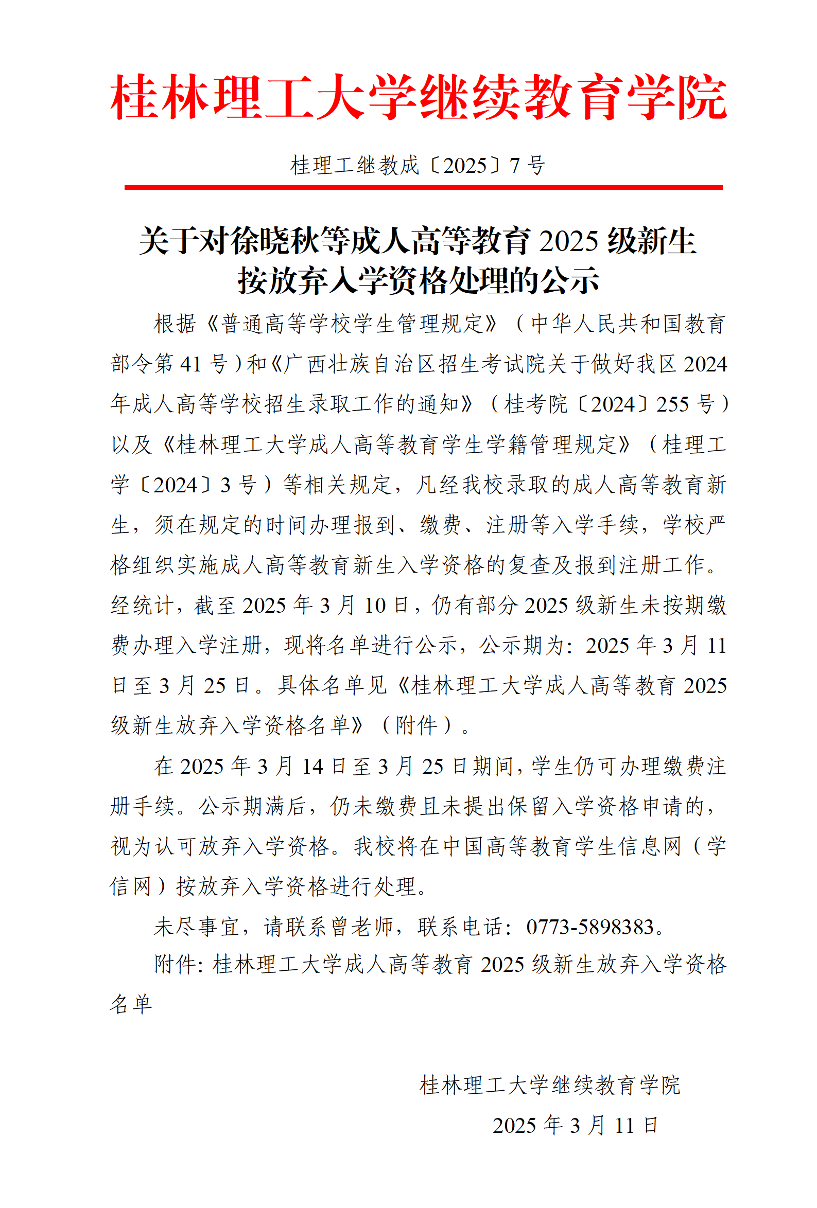 关于对徐晓秋等成人高等教育2025级新生按放弃入学资格处理的公示 发布者:成高管理中心 2025-03-11 已阅人次 (一审:曾婕 二审:林文钊 三审:李衡) 附件【taptap点点官方网站成人高等教育2025级新生放弃入学资格名单.xlsx】已下载次 上一条:taptap点点官方网站关于成人高等教育学生申请更改个人信息的管理规定 下一条:关于做好2025年春季学期成人高等教育课程重修工作的通知 关注我们