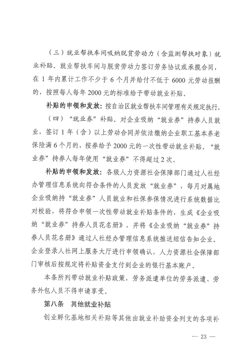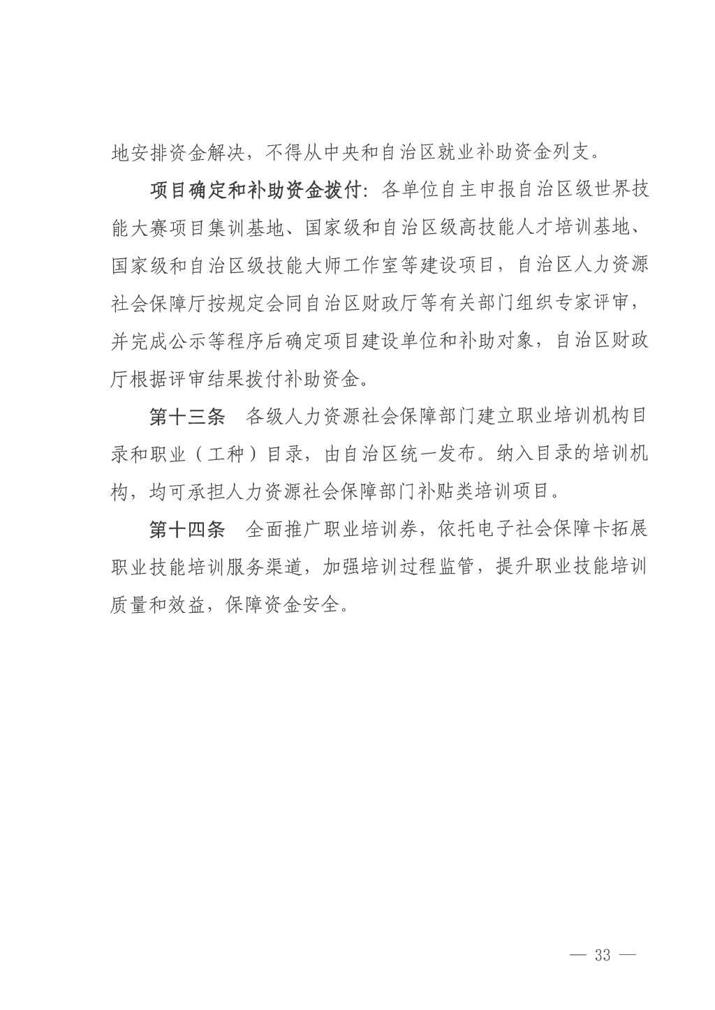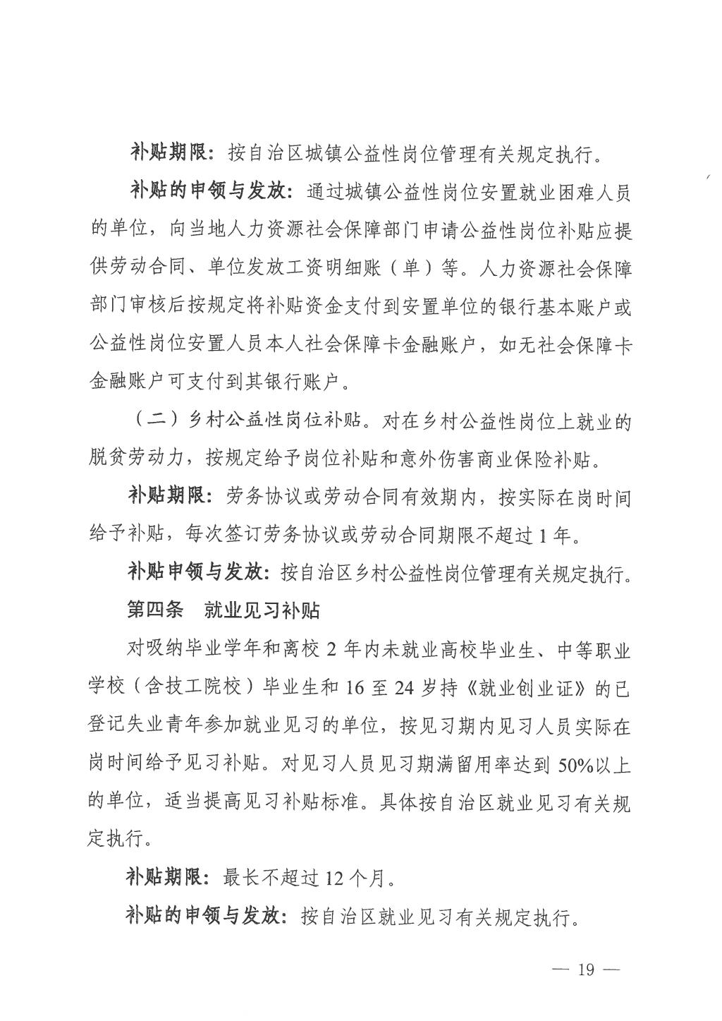 广西壮族自治区人力资源和社会保障厅广西壮族自治区财政厅关于印发《广西壮族自治区就业补助资金管理办法》的通知 发布者:培训中心 2024-03-01 已阅人次 上一条:桂林市人力资源和社会保障局关于印发《桂林市就业创业补贴实施细则》《桂林市职业技能培训补贴实施细则》的通知 关注我们